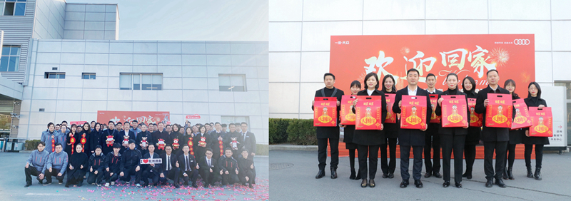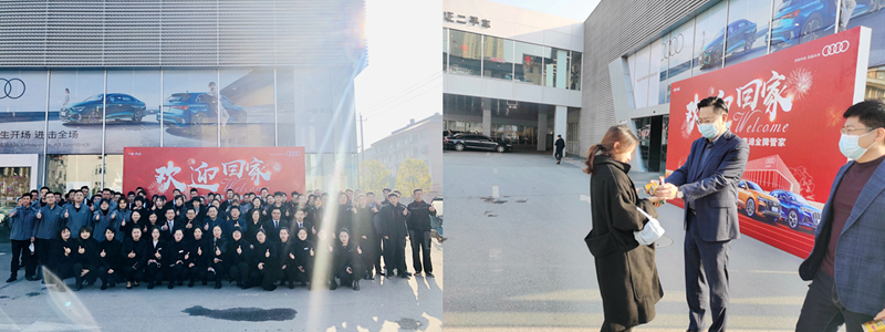 东阳德奥执行总经理张永涛带领各部门总监聚在大门口,欢迎每一位顺利返程到岗的伙伴,并送上新春的祝福!