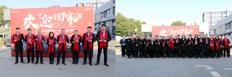 初七清早,汽车事业部董事长莫见忠、汽车事业部执行总经理兼杭州德奥总经理沈美琴,杭州城西德奥执行总经理徐天红,东阳德奥执行总经理张永涛,桐乡德奥执行总经理袁其祥,宁波德奥执行总经理沈一彪分别携各店部门总监打响新春第一炮,喜迎新春开门大吉。