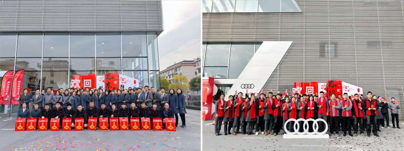 在清早初阳的照耀下,杭州德奥、杭州城西德奥、东阳德奥、桐乡德奥各店管理团队迎接员工返岗开工,并为员工送上新春祝福。 各4S店管理团队在开工第一天,整齐划一,列队欢迎每一位顺利返程到岗的伙伴,以暖心的“新年好”送上新春的祝福!灿烂的笑容、真挚的祝福、暖心的礼物,都是德奥温情的传递,更是对新年美好的期待与鼓励。在阳光的辉映下,礼炮绚烂,小伙伴们容光焕发,以饱满的龙马精神,聚力开启美好征程。