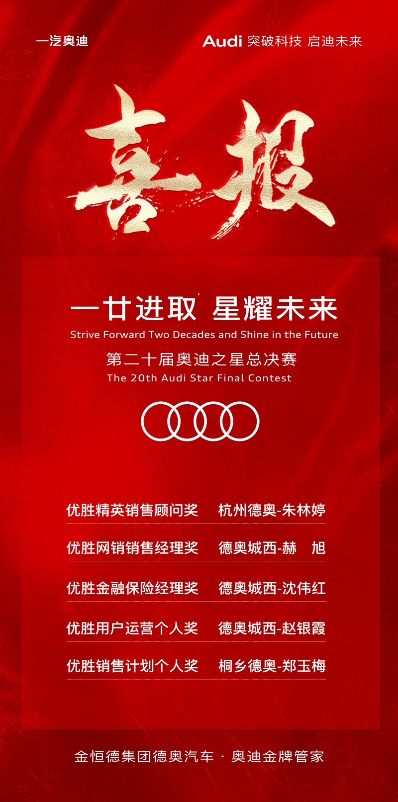 奥迪之星是所有奋战在品牌一线的奥迪人追逐的目标与梦想。金恒德集团汽车板块各店的精英骨干人员一路披荆斩棘,以竞赛促能力,开拓业务见识,学习优秀的工作技能与管理经验。通过全网精英选手们的角逐检核自身工作技能上的弱项与不足,从而不断在实际工作中加以完善与提升。德奥汽车的小伙伴们秉持“精益求精、追求极致”的企业精神,不断进取,在奥迪品牌最高领奖台上持续收获骄傲与荣光!