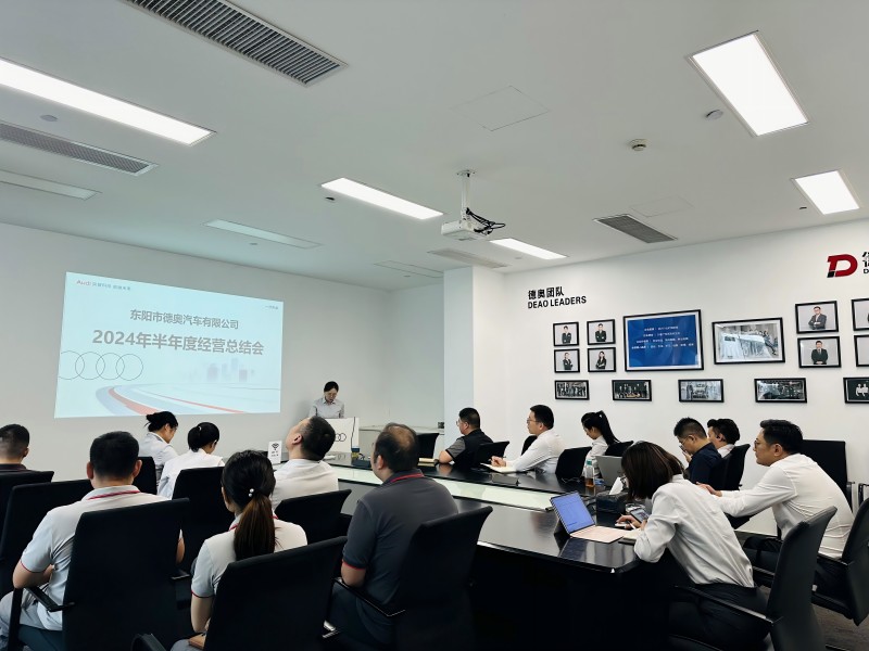 最后,东阳德奥总经理张永涛作总结讲话。张总肯定了东阳德奥2024年上半年取得的成绩,同时要求全体员工要及时复盘经营中的问题与不足,同时提出对东阳德奥下半年工作目标的建议:1、东阳德奥要在集团整体战略规划的引领下,统一思想,凝聚力量,以实际行动找差距、补短板,不断提升企业的综合运营能力。同时,张总要求全体员工要继续秉承“坚定信念、敢闯新路、争当楷模”的价值观,将企业文化核心理念内化于心、外化于行;2、要明确目标,精准施策,通过创新精准营销、强化销售能力、提升服务价值、扩大二手车业务规模等关键举措,推动经营管理工作再上新台阶;3、在当前充满挑战与变数的市场环境下,要深耕用户保留策略,明确自身的定位与优势,划定独特的价值领地,通过精准的用户洞察与个性化的服务方案,筑起一道坚实的用户忠诚之墙。