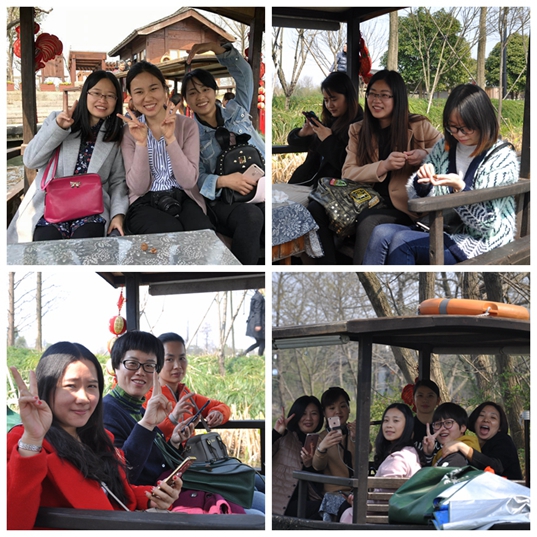 三八节当天,活动组组织女性员工游览了风景优美的的西溪湿地,正值初春,阳光温暖,柳树吐芽,春水渐绿,大家三五成群,穿过古朴别致的西溪洪园,槿篱茅舍,小桥横溪,好不惬意。在游园活动中,活动组为大家设计一个“特别环节”——“我眼中的你”:提前安排同事给每一位女性写一段评语,用一到两个亮点去概括女性员工特质,通过通过他人的眼睛,挖掘女性员工身上独特的魅力点,让女性同胞意识到自己的美,更加自信。