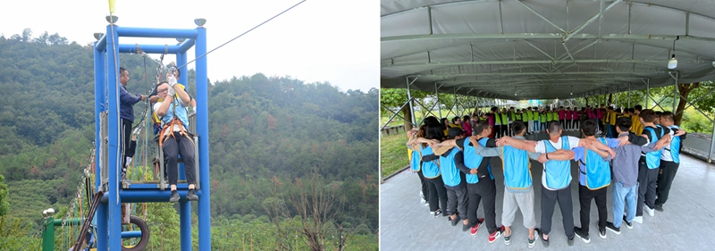 在教练的安排下,一个个拓展项目有序开展:“挑战丛林探险”——这项活动对队员的体力及协作力有一定的要求,面对一个个障碍,队员们攻克难关、勇往直前,随着任务一个个被攻破,同事们也在合作中增加了彼此的信任和了解;“达芬奇密码”——通过团队的合作与智慧,考验的不仅仅是团队协作,同时也对执行力提出了很高的要求,紧张刺激的挑战让队员们在合作中成长,达成的结果也一次次的提升;“勇夺缅甸桥”——面对横在水面的钢索,队员们一个个勇往直前,不畏艰险,全部顺利到达对岸;“激情皮划艇”——队员们分组上艇,相互之间开展竞速比赛,团队协作,互相进步;“UTV越野体验”——驾驶小型越野车在泥泞的小路上穿行,团队成员们在确保安全的前提下,不畏艰险,一个个都完成了越野任务。在拓展训练活动之余,队员们还体验了锦鲤喂养、滑草、小火车等活动,充分放松了心情。