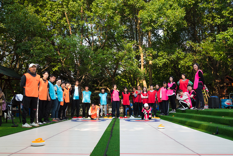 会议结束,全体成员来到了冰壶场地,经过趣味的热身操后,开始了本次团建活动的最后一项议程:一项展示金恒德人员品质的冰壶大比拼。旱地冰壶是一个以团队为单位在平滑地面上进行的投掷性竞赛项目,是一项需要个人技术与团队配合的运动团建项目。需要小组成员团结协作,通过制定进攻战术、防御战术等策略,来达到克敌制胜的目的。小组的成员经过练本领、强战术、洒汗水,共拼搏,来实现最终的胜利,充分地展现了绍兴金恒德团队“团结、忠诚、学习、创新、拼搏、诚信”的金恒德人品质。